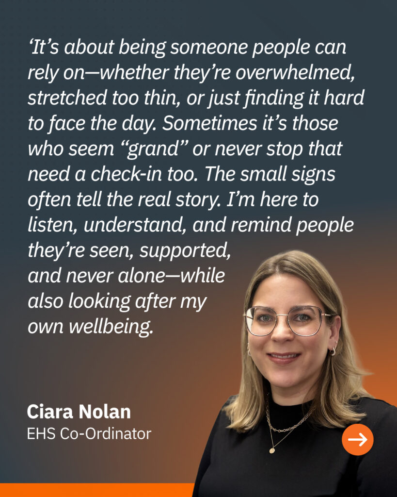 That’s why we have trained Mental Health First Aiders to make sure support is available and at the heart of our culture. Their role is to provide a confidential, approachable point of contact for anyone who may be struggling, feeling overwhelmed, or simply in need of a conversation.